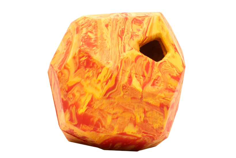 It may look like a piece of obsidian rock, but it’s Gnawt-a-Rock - a durable treat dispensing dog toy is inspired by natural volcanic glass formed by rapidly cooling lava from Pacific Northwest volcanoes. The Gnawt-a-Rock is made with natural latex rubber, a faceted surface, and an irregular shape. It all comes together to keep your pup guessing, whether chasing after its erratic bounce or nuzzling and nosing it around for interactive treat-dispensing to stimulate their mind.